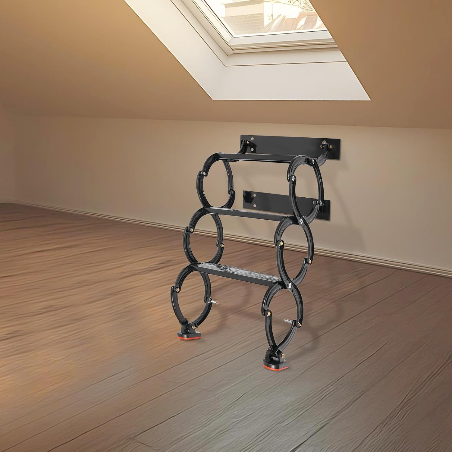 ApplicationIt is suitable for attics, duplex apartments, garages, warehouses, lofts, basements, hotels, guesthouses, fire escapes, stores, retail spaces, etc.SpecificationColor: White/BlackStyle: ModernProcess: StampingMaterial: Cold-rolled SteelInstallation Required: YesMounting Type: Wall MountedLoad-bearing Capacity: 300kg/661.39lbsNumber of Steps: 3Step Spacing: 25cm/9.84inStep Size(L*W): 40*14cm/15.74*5.51inInstallation Height(Vertical Distance from Ladder Top to Ground): 75cm/29.52inProduct Expanded Size(L*Oblique Height): 43*100cm/16.92*39.37inPackage Size: 51*43*34cm/20.08*16.93*13.39inGross Weight: 10.5kg/23.15lbsNet Weight: 9.97kg/21.98lbsPackage Included1* Pull Down Telescoping Step Ladder1* English InstructionOther Accessories for InstallationNotes1. Please check the product size carefully before purchasing.2. Please use the product within its load-bearing capacity range.3. Please note that the installation height (vertical distance from the top of the ladder to the ground) should be 29.52 inches for the bottom of the ladder to reach the ground.4. The wall must be a solid load-bearing wall.5. Normally, the expansion screw will blow up after the force is applied. 6. Please allow the slight color difference caused by the shooting light and 1-3cm error due to manual measurement, and make sure you do not mind before ordering.