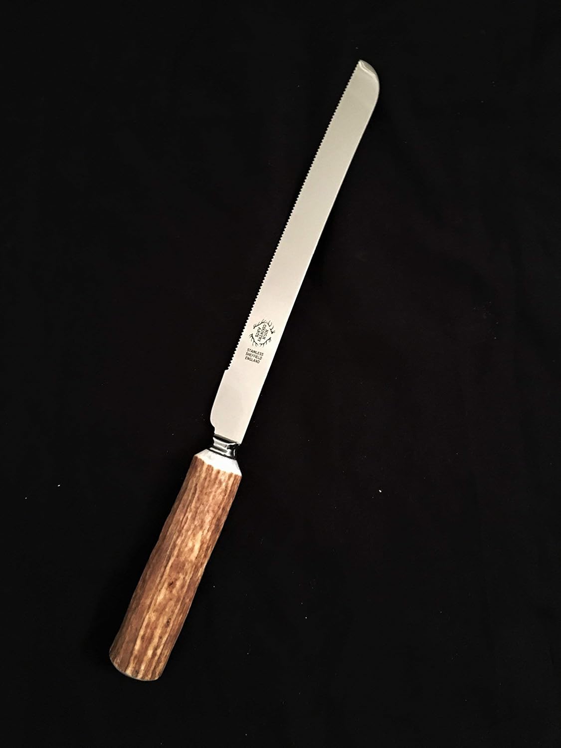 Perfect gift for special occasions, events and weddings! This beautiful naturally shed antler handled cake knife and server set will add charm to any occasion! The naturally shed elk, and deer antlers are hand polished and then inset with polished nickel silver end caps. One of a kind because no two antlers are ever alike! The knife is approximately 12 3/4" long. The cake server is approximately 9 1/5" long. Handmade in Oregon by High Country Arts.