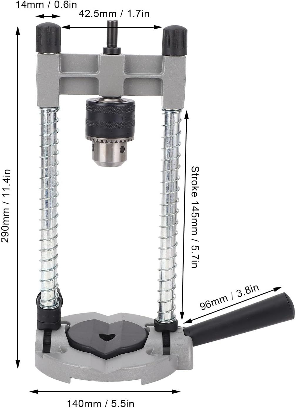 Spec: Item Type: Portable Drill Guide Material: Aluminum Alloy+ABS Stand Hole Diameter: Approx. 38-43MM / 1.50-1.69in Clamp Range: Approx. 1.5-13MM / 0.06-0.51in Package List: 1 x Drill Stand 1 x Base 1 x Adjustment Key 1 x Centering Fixture How To Use: Take out the product, install it, and it is ready to use.