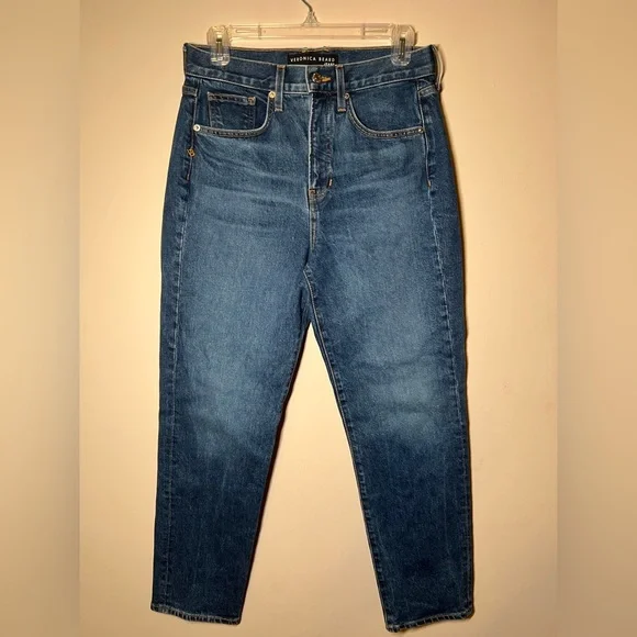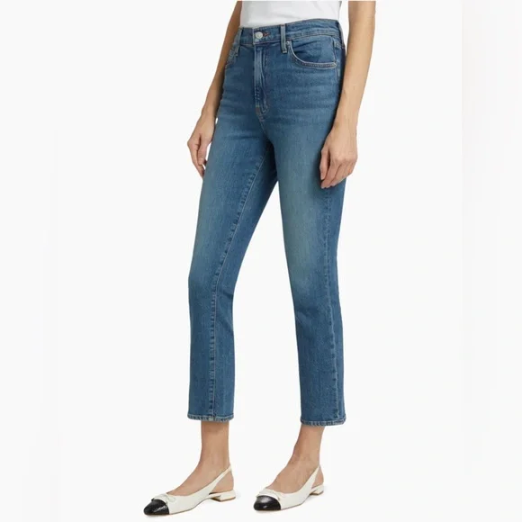 Details:Crafted of Italian stretch denim, Veronica Beard's sleek Ryleigh slim-fit jeans showcase a five-pocket style and high-rise fit. This timeless piece flaunts light fading at the thighs, finished with a cropped ankle length.* Size: 28/6* Waist: 14.5” across laying flat* Inseam: 27.5”* Front rise: 12”* Five-pocket style* Zip fly, button closure* 98% cotton/2% elastane* Machine wash* Made in USA of Italian fabric